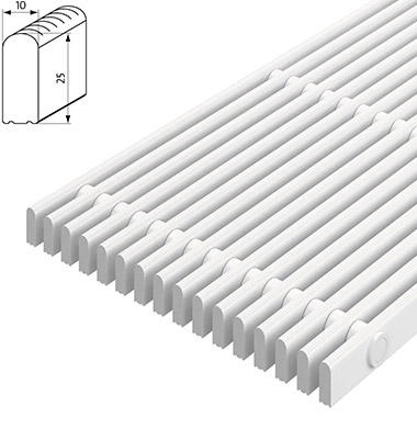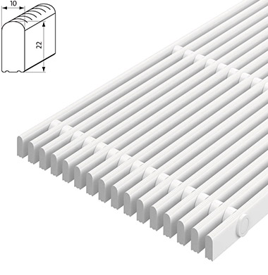 | Материал | Верхние планки из профилированного ударопрочного твердого ПВХ, нижние планки из черного мягкого ПВХ, прочно сварены друг с другом. Абсолютно устойчивые против коррозии, хлорированной, морской и лечебной воды |