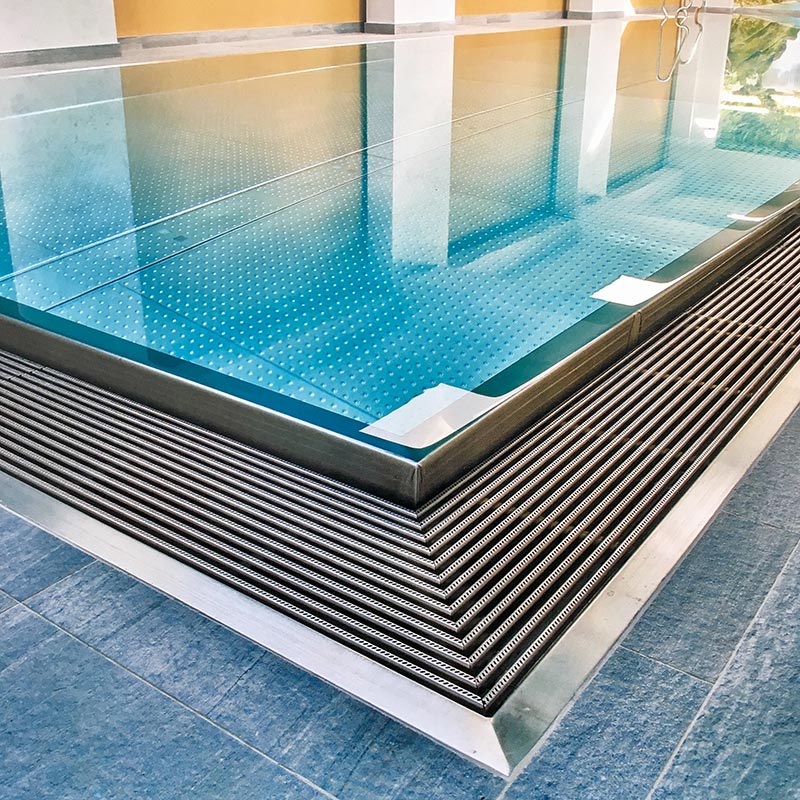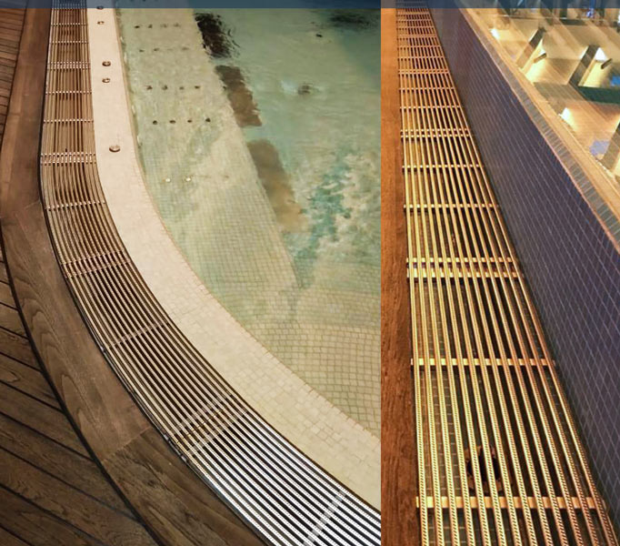 Решетки из нержавеющей стали будут изготовлены под ваш проект бассейна — по вашему желанию с необходимой высотой, шириной и радиусами изгиба.