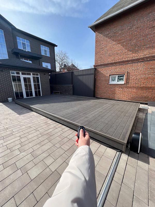 Терраса имеет два неподвижных синхронизированных мотора, управляемых дистанционно с пульта.