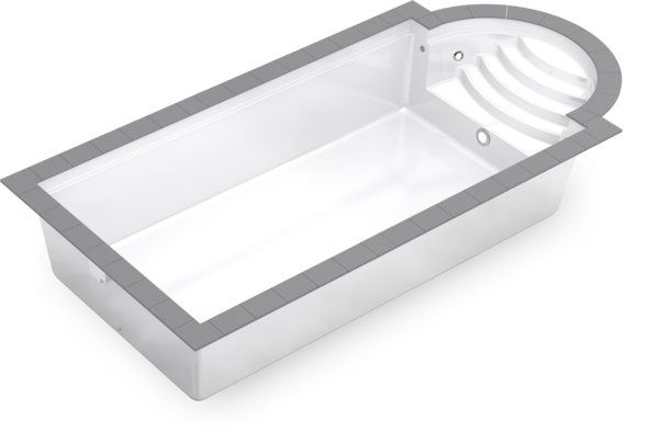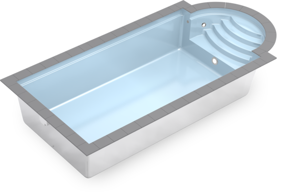 Возможна установка противотоков, гидромассажей и жалюзийного покрытия под форму бассейна. Бассейн сделан по принципу сэндвича, с 20 мм изоляции в стенах и 30 мм в дне. Бассейн имеет наклона стен 6°.