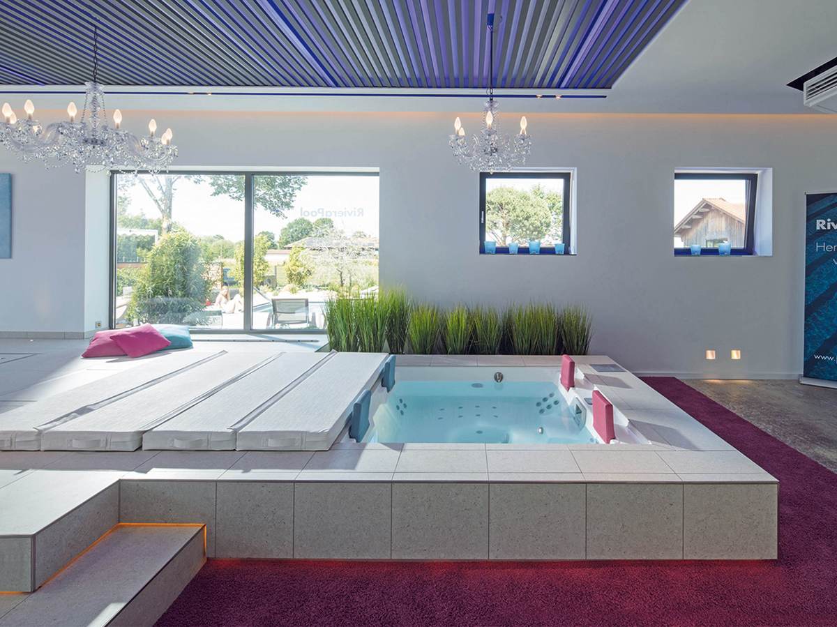 Инновационная термоизолирующая крышка «Daybed» выполняет еще функцию кровати, что очень удобно, когда вы захотите вздремнуть после принятия ванны. Кровать-покрытие изготовлено настолько прочно, что может вместить двух человек, даже над бассейном.