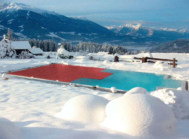 Мы используем материалы, отвечающие стандартным требованиям. Поликарбонат устойчив к температуре до -60° C, ПВХ до -50° C, а ПУ до -40° C. Поэтому для покрытия на зиму из-за температуры обычно не требуется дополнительной зимней изоляционной защиты вашего бассейна. Наше покрытие можно скрутить или оставить зимовать на поверхности воды. Таким образом, наше покрытие надежно защищает бассейн зимой и летом против листьев, мелких животных, грязи, а также повышает безопасность.