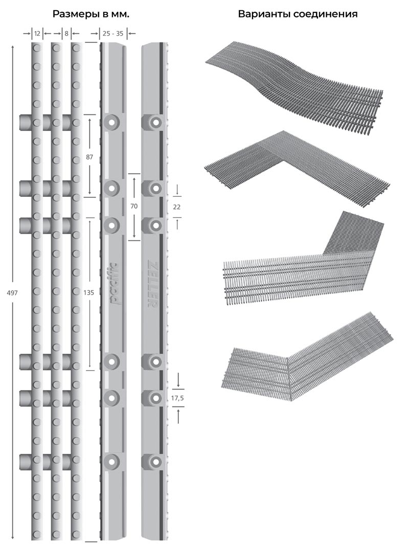 Предлагаем весь спектр переливных решеток Zeller и информационных табличкек.