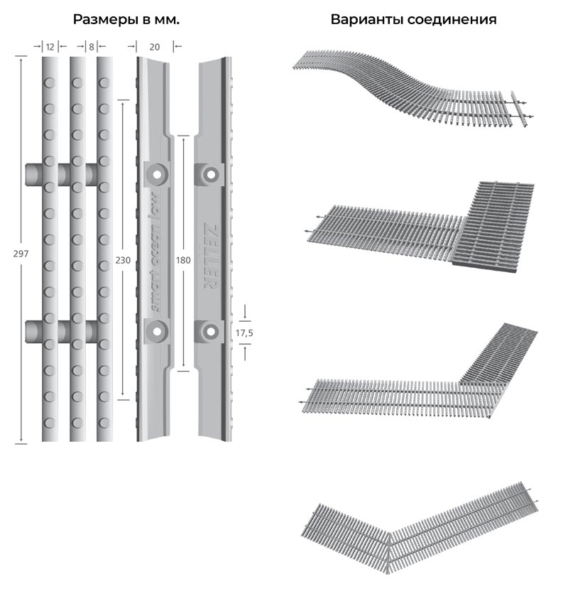 Решетки изготовлены из полипропилена — безопасны, с противоскользящей поверхностью и приятные на ощупь.